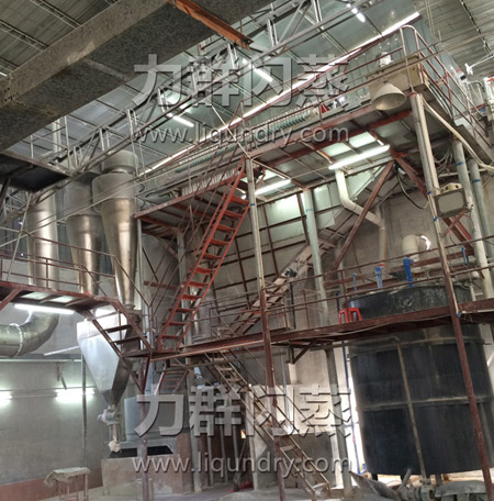 三、干燥概述   豆沙粉干燥是整個工藝生產中^后一個環節,是檢驗豆沙粉品質色度^重要的保障。所以在干燥豆沙粉的時候必須選擇正確的干燥設備,這樣不僅能保證完成干燥生產作業而且能提高產品品質。   目前國內烘干豆沙粉還是停留在老的烘干方式,譬如一些小作坊普遍采用夾層攪拌斧進行邊攪拌邊烘干,這樣照成產品品質不能達標,生產環境比較惡劣。條件好的企業采用槳葉干燥、氣流干燥、帶式干燥、螺帶干燥。但是以上幾種都不能滿足工業化生產。由于槳葉干燥、帶式干燥、螺帶干燥在生產時時間比較長,在烘干時候容易使部分物料變性或粘附在壁上,如果不及時發現會隨著干燥好的物料一起摻和在成品里面。造成產品不合格、不衛生。因此針對豆沙廠家的實際情況,力群干燥為福建生物科技公司設計了一臺專用生產豆沙的閃蒸干燥機,在閃蒸干燥機的性能上做了相應改動。在調試生產時一次性達標,干燥時間非常短,物料的流動性特別好,色澤鮮明,產品水分控制良好。而且干燥塔內沒有任何粘壁現象,塔體底部無殘留豆沙粉在里面。這樣使工人在每次生產作業時候無需做清理,減輕了勞動強度。